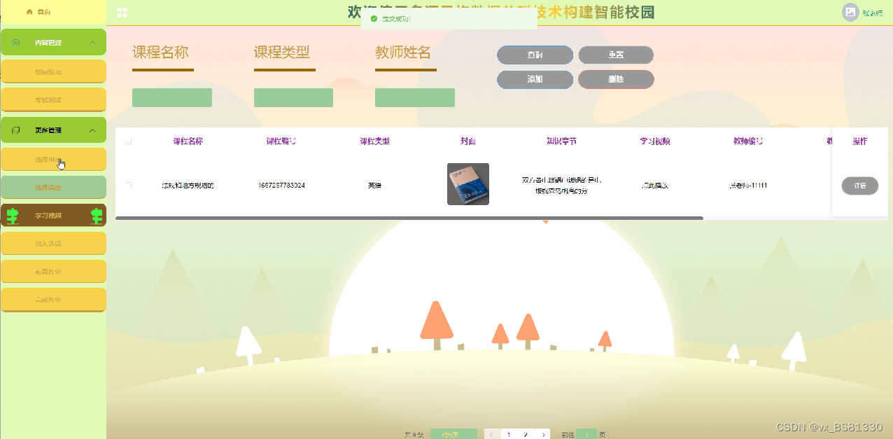 选课信息管理,在此页面可以维护提交选课信息,如图5-11所示。