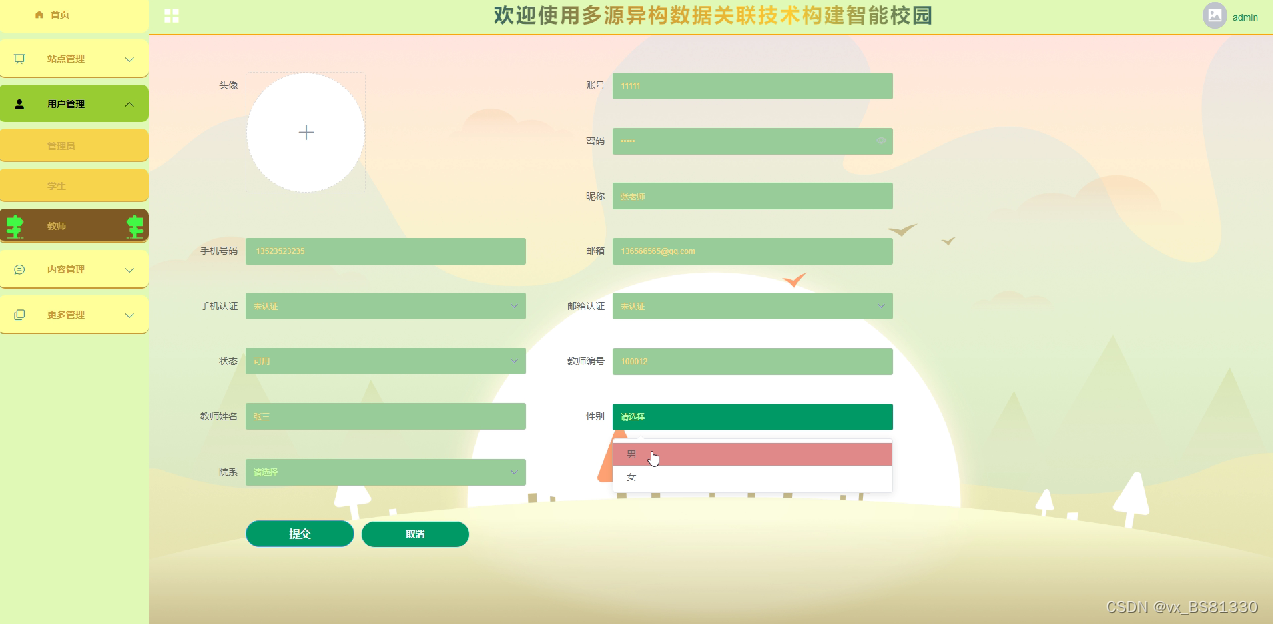 系统所要实现的功能分析,对于现在网络方便的管理,系统要实现用户可以直接在平台上进行查看所有数据信息,根据需求可以进行在线添加,删除或修改多源异构数据关联技术构建智能校园信息,这样既能节省时间,不用再像传统的方式耽误时间,真的很难去满足用户的各种需求。所以多源异构数据关联技术构建智能校园的开发不仅能满足用户的需求,还能减少原有不必要的工作量,大大提高了管理员的工作效率。