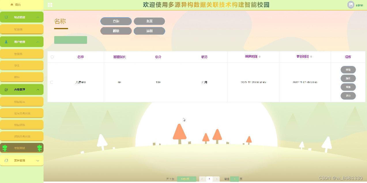 考试测试管理,在此管理页面可以考试测试信息进行增删改等操作,如图5-6所示。