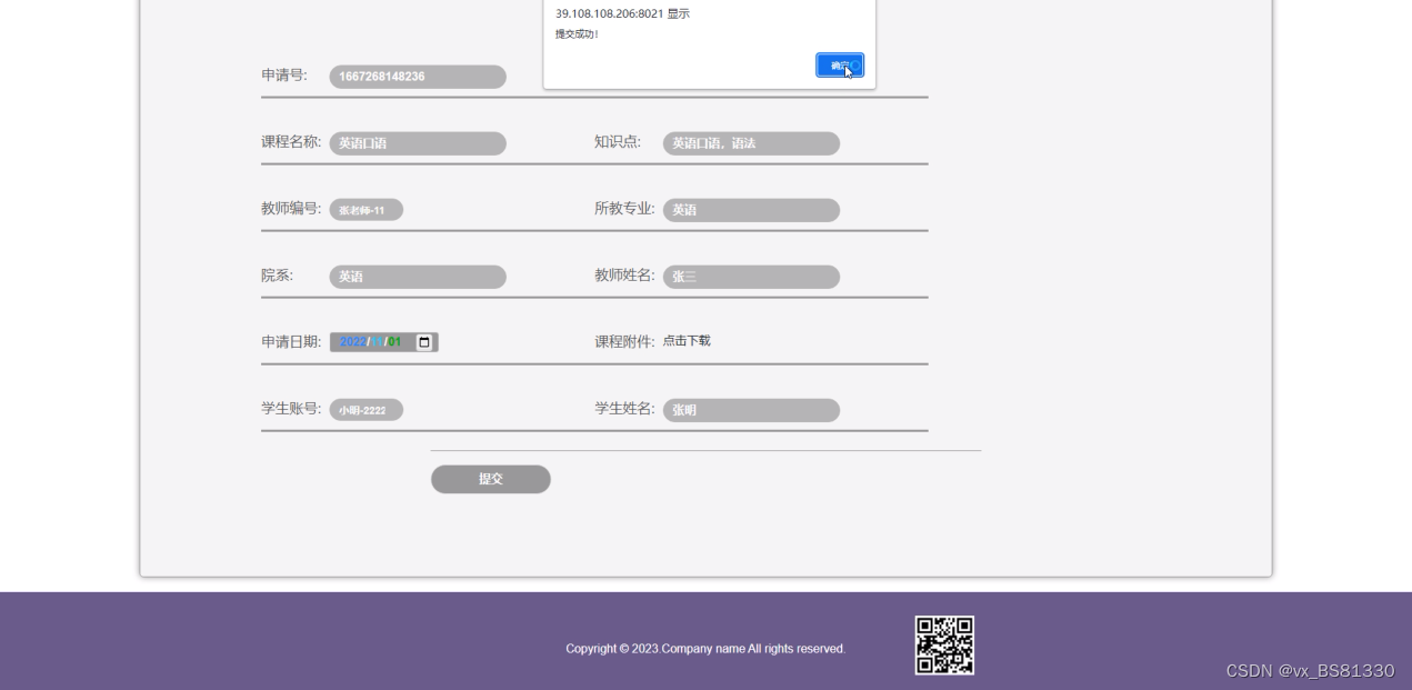 | 登录模块 | 学生名:123 密码:admin | 弹出错误提示,提示学生名错误 | 弹出错误提示,提示学生名错误 | 通过 |
