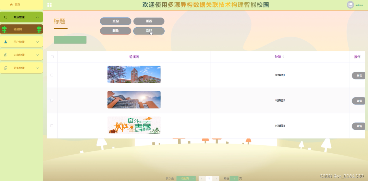 轮播图管理管理,在此管理页面可以轮播图进行增删改等操作等操作,如图5-7所示。