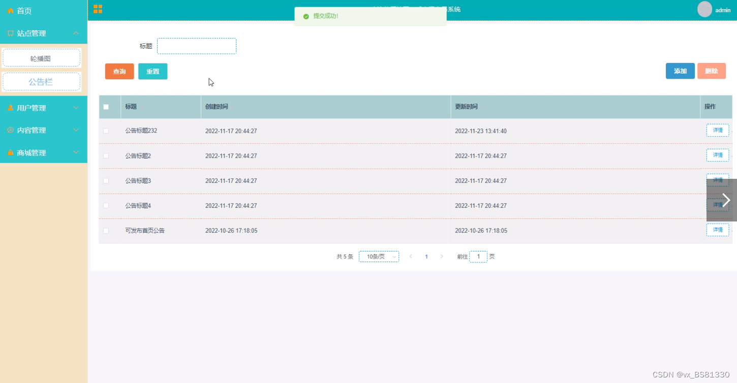 (1)我的评论:管理员对用户提交的留言回复、删除。