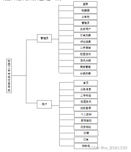 校园二手市场交易系统是中需要存储不少商品信息,其模块功能结构,具体的结构图如下: