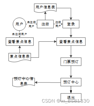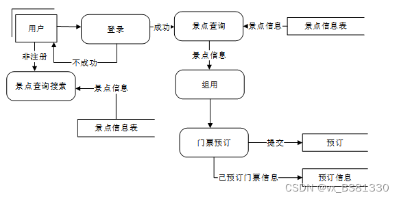开发周口旅游大全微信小程序最主要的一个目的就是实现用户对景点门票的预订,图2-3就是系统的数据流图。