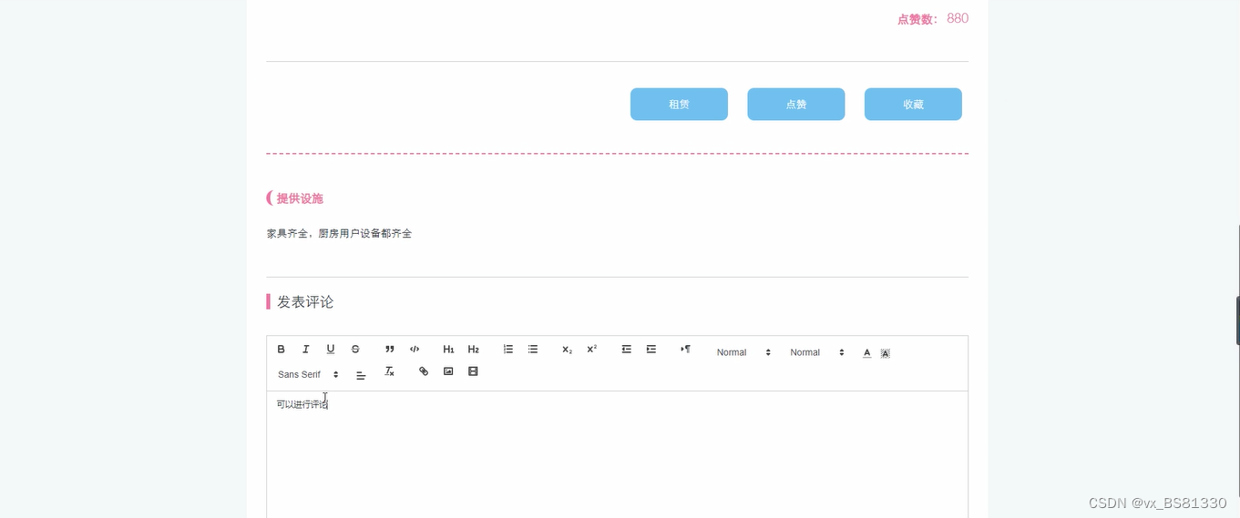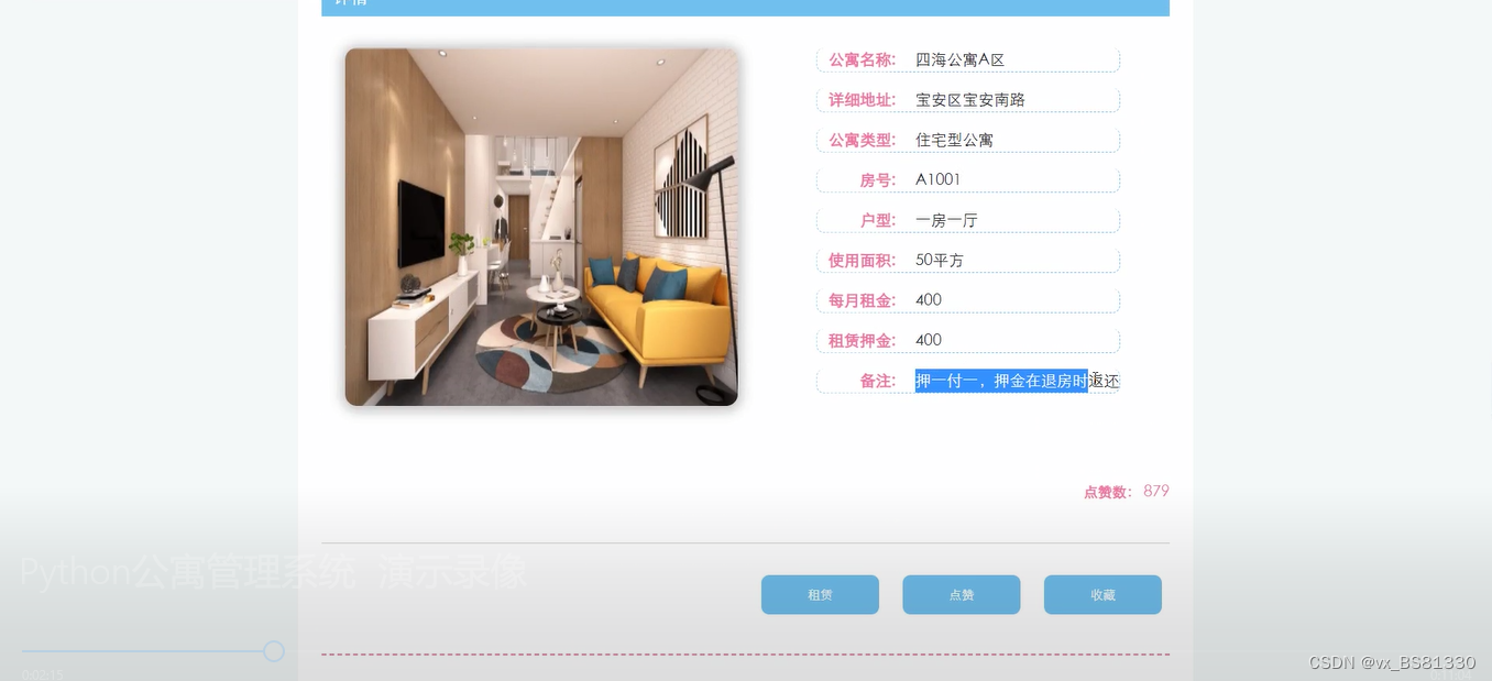 用户查看房源信息,对喜欢的房间信息进行收藏或者提交租赁申请,如下图所示。