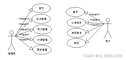 The main users of the apartment management system are divided into administrators and system users. The implementation functions include the system user's front desk: home page, announcement message, apartment information, room message, my (my account, my collection, personal center). Back end of system users: more management (room leasing, check-in, water and electricity payment, check-out registration, deposit return). Administrator: site management (broadcast map, bulletin board), user management (administrator, system user), content management (information list, information classification list), more management (room information, house type classification, room lease, check-in registration, water and electricity payment, check-out registration, deposit return), etc.