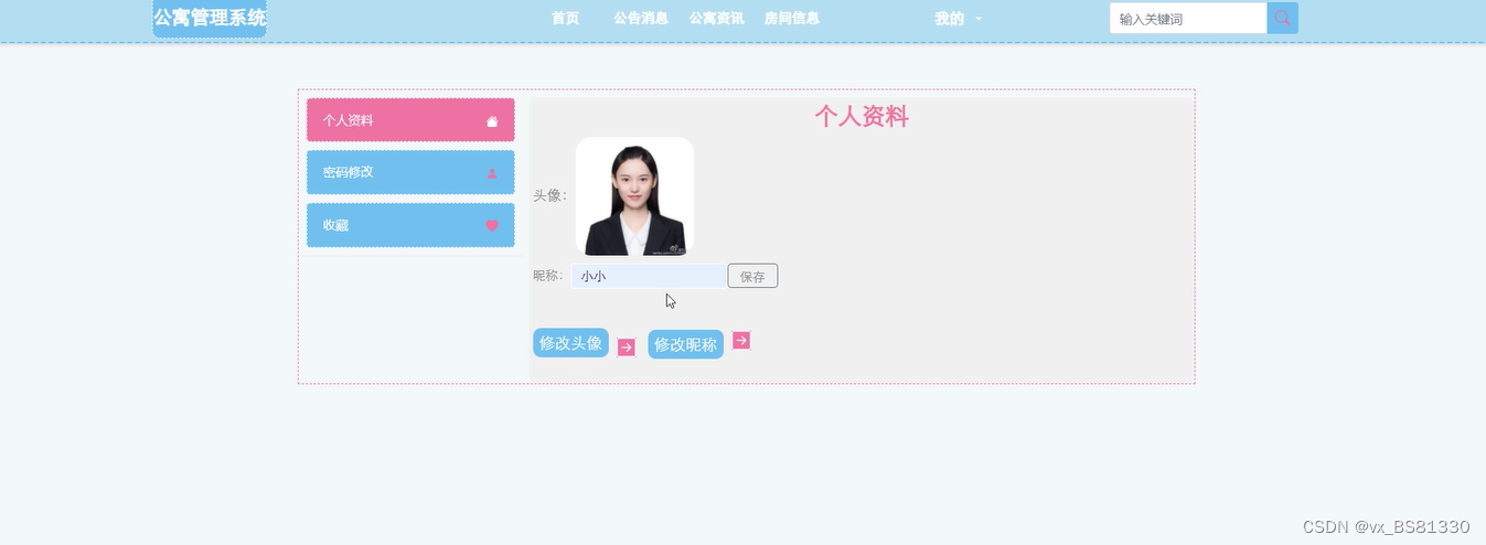 公告消息、公寓资讯:用户查看公告消息、公寓资讯。