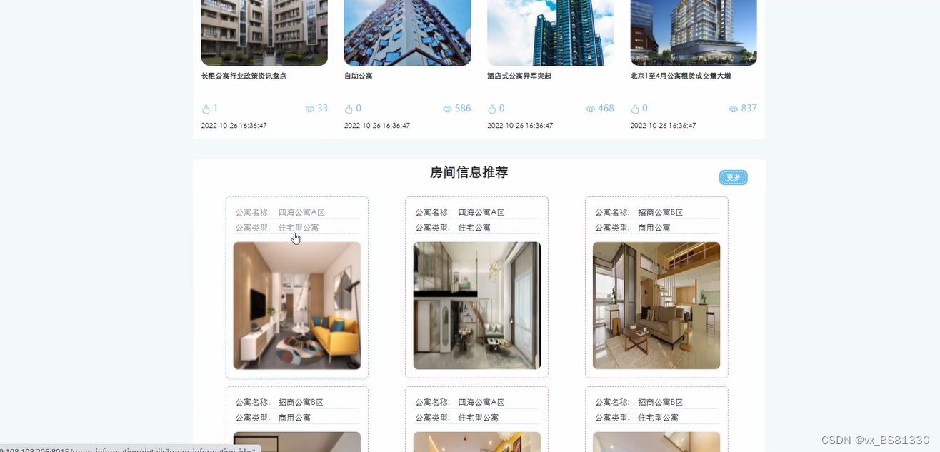 房间消息:用户查看、收藏房间消息、并进行租赁申请。