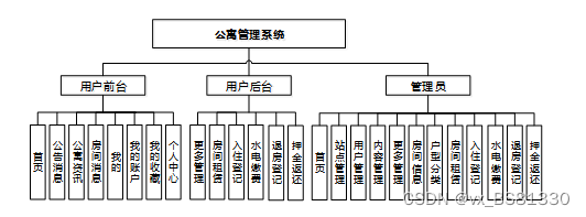公寓管理系统总体分为注册用户模块和管理员模块。