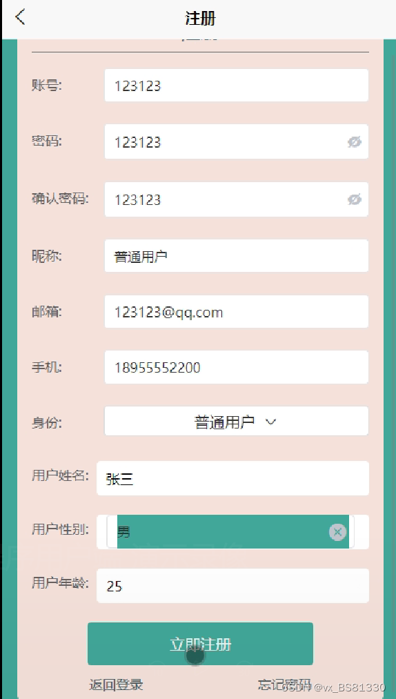 注册,在注册页面通过填写账号、密码、昵称、邮箱、手机等信息完成注册,如图4-2所示。