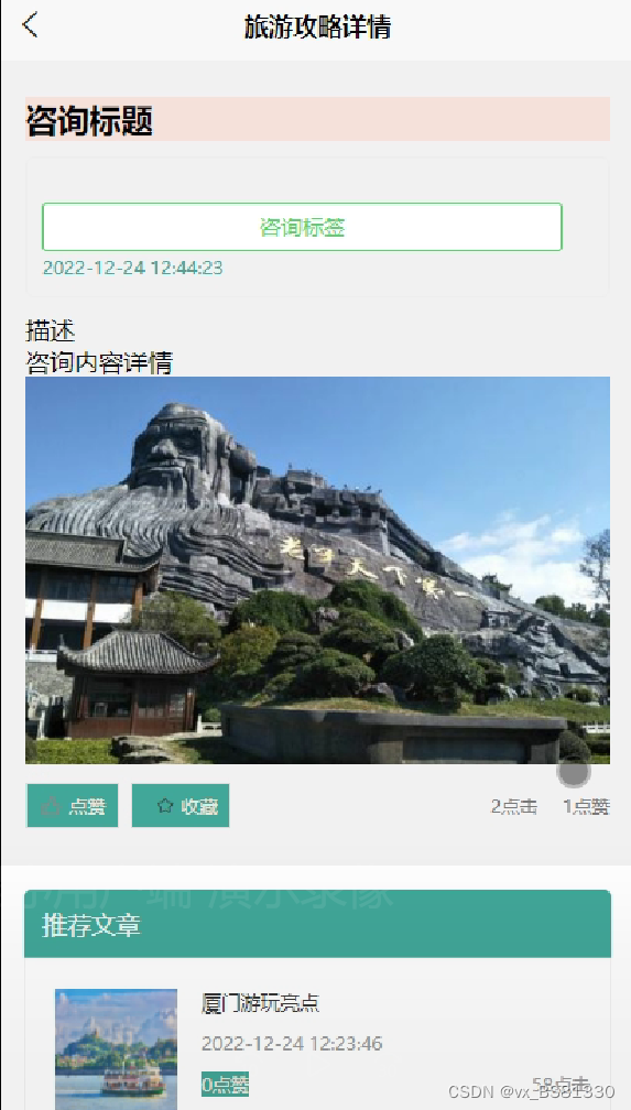 2.查看旅游攻略详情,单独查看某一个攻略的详细信息。