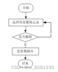 用户可选择要删除的信息进行信息删除操作,在删除信息时系统提示是否确定删除信息,是则删除信息成功,系统数据库将信息进行删除。删除信息流程图如图2-4所示。