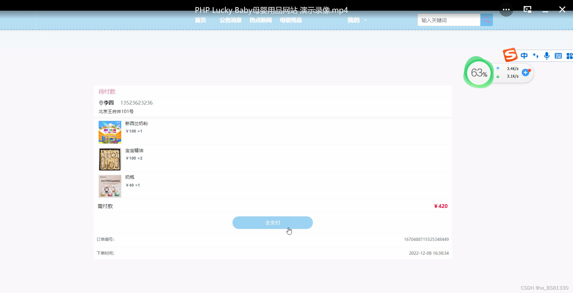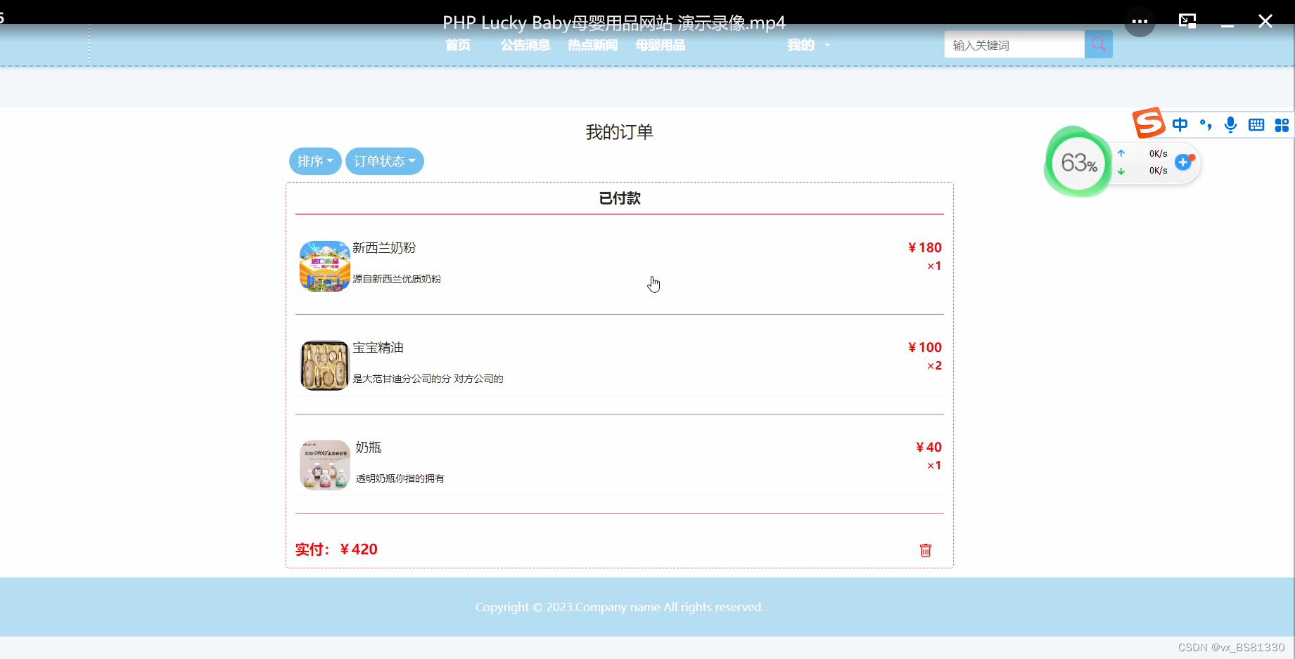 Design and implementation of PHP+Lucky+Baby's website for mother and baby products