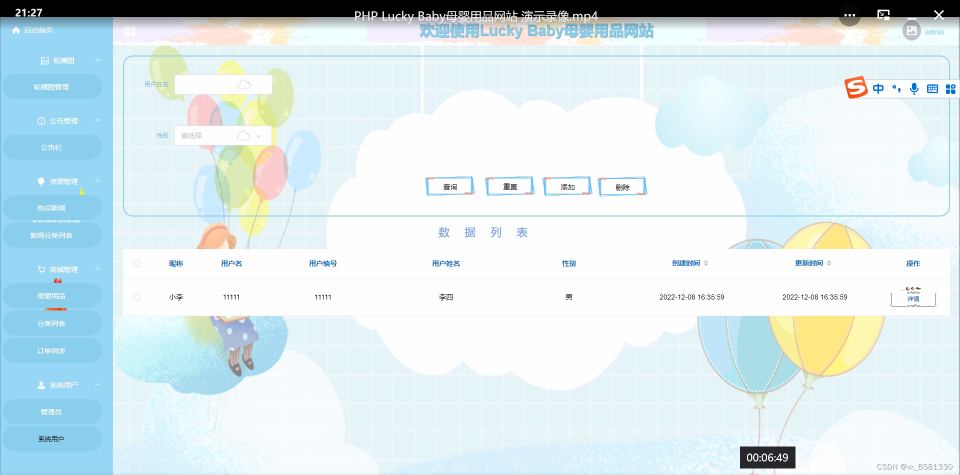 PHP+Lucky+Baby母婴用品网站的设计与实现