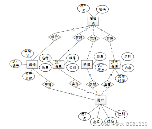 E-R图,更加直观的告诉开发用户系统的各个数据的属性,各个数据之间的联系,各个数据的类型。能通过该模型更直观地了解数据库的设计,并根据对其逐渐改善,如下图所示。