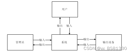 如下为系统的顶层数据流图,外部实体有用户和管理员,分别对系统输入数据,从而得到要输出的数据。