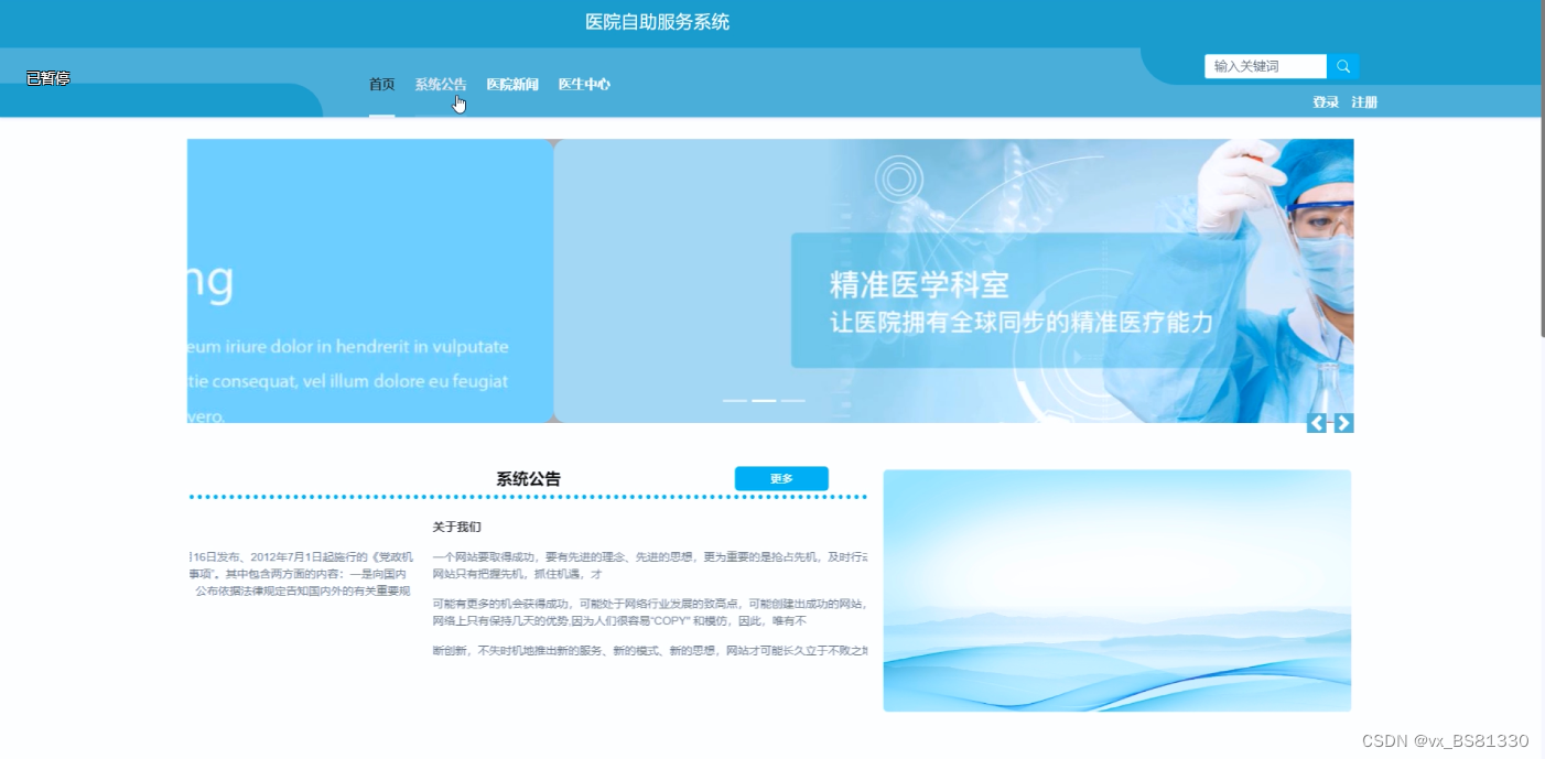 本文围绕医院自助服务系统展开,分析了开发该系统的背景和意义,介绍了Spring Boot框架。阐述了系统的总体设计、详细设计与实现,涵盖用户和管理员功能模块。最后进行系统测试,为系统后期推广运营提供技术支撑,采用Java、MySQL等技术。
