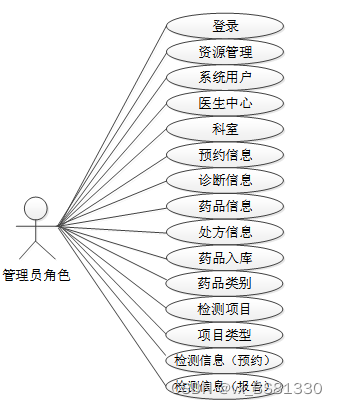 web后台管理上的管理员是维护整个医院自助服务系统中所有数据信息的。管理员角色用例如图2-4所示。