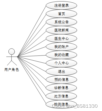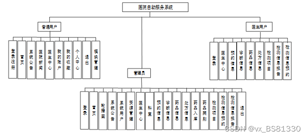 按照医院自助服务系统的角色,我划分为了普通用户、医生用户和管理员这三大部分。