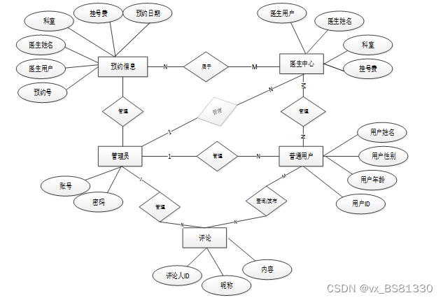 医院自助服务系统是一个交流性质的公开平台,用户用户可以在平台上交流,增加用户之间的互动性。但是同时也为了更好的规范评论的内容,给予管理员删除不合适的言论的功能,所以需要专门设计一个评论管理模块,具体的结构图如下: