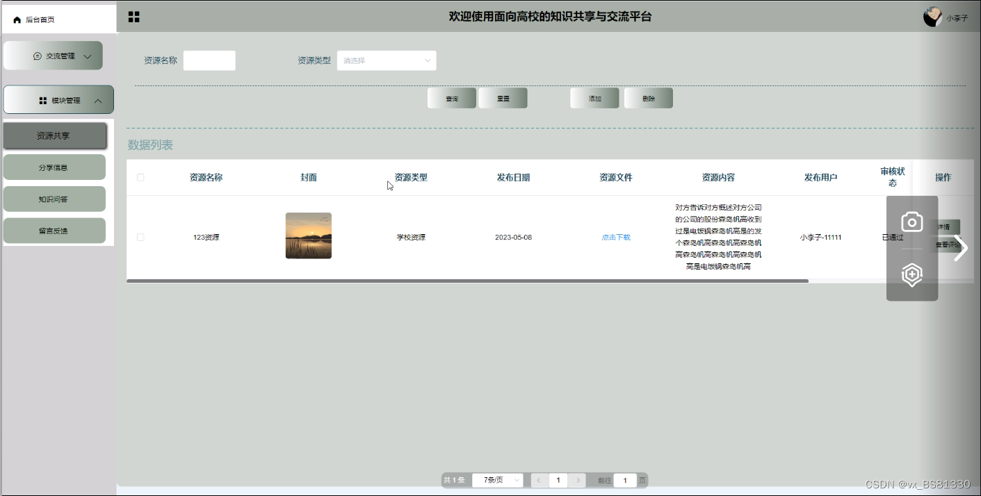 Springboot is a knowledge sharing and exchange platform for universities