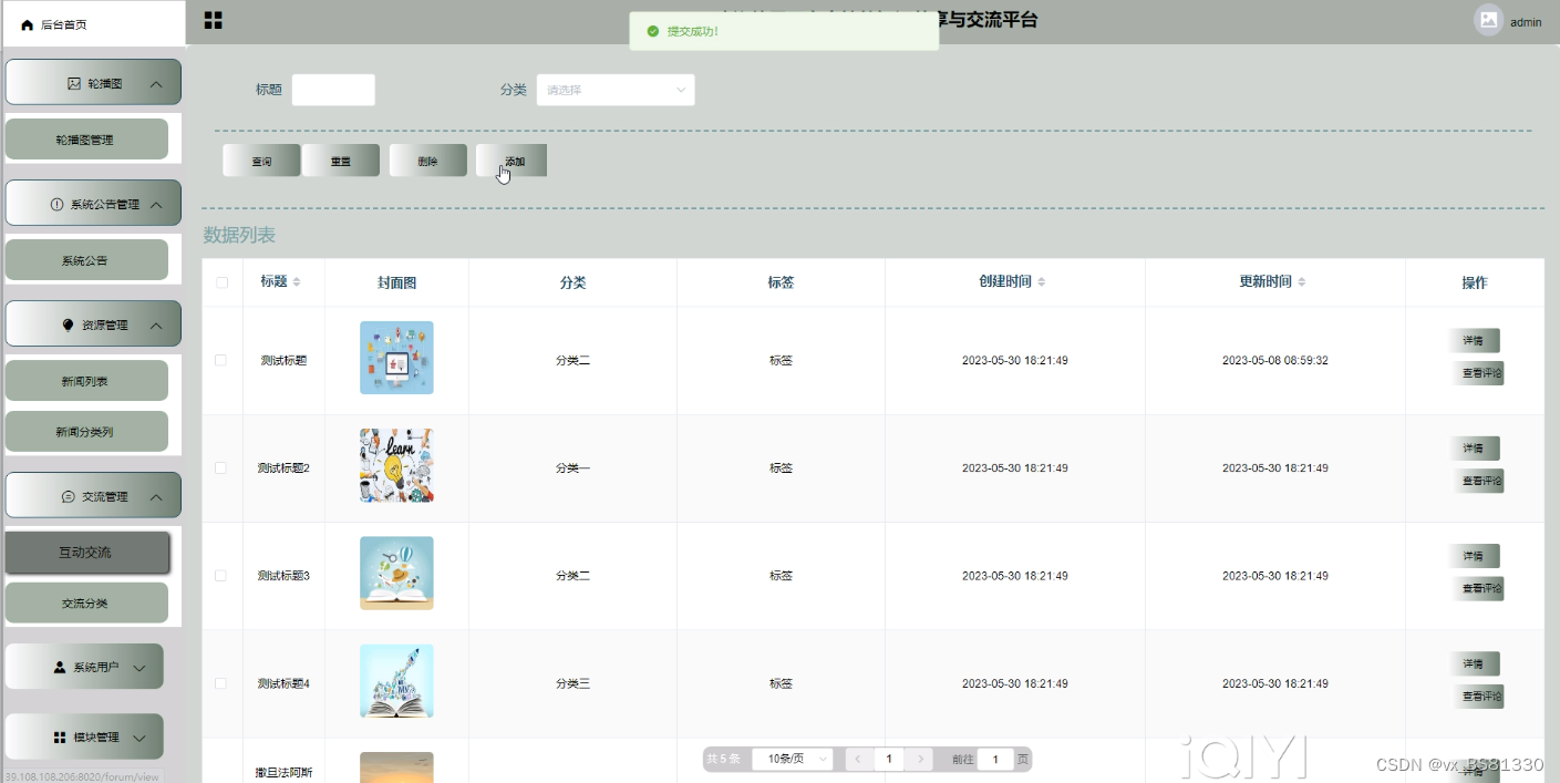 面向高校的知识共享与交流平台采用springboot语言、Java框架、MySQL数据库支持下共同完成了该网站系统的开发,实现了知识共享与交流平台的信息化,用户可以有一个非常好的面向高校的知识共享与交流平台体验,管理员也可以通过该系统进行更加方便的管理操作,实现了之前指定好的计划。
