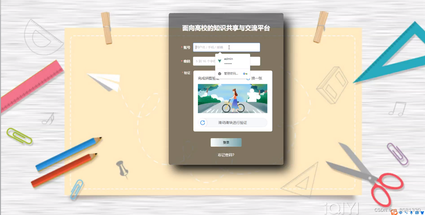 面向高校的知识共享与交流平台的使用界面简单易于操作,采用常见的界面窗口来登录界面,通过电脑进行访问操作,用户只要平时使用过电脑都能进行访问操作。此系统的开发采用springboot技术开发,人性化和完善化是B/S结构开发比较显要的特点使得用户操作相比较其他更加简洁方便。易操作、易管理、交互性好在本系统操作上体现得淋漓尽致。
