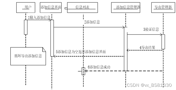 管理员以及用户登录后均可进行添加信息操作,添加信息模块顺序图如图4-4所示。