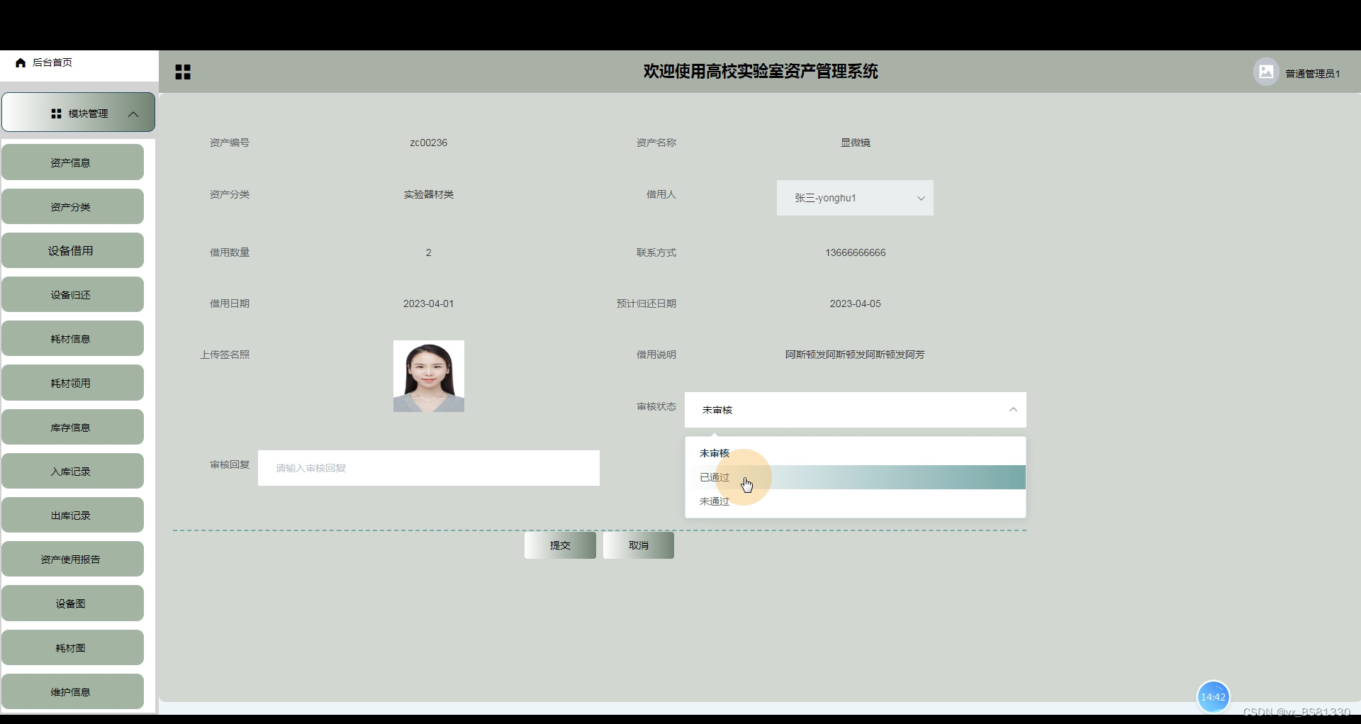 图5-13设备借用审核界面
