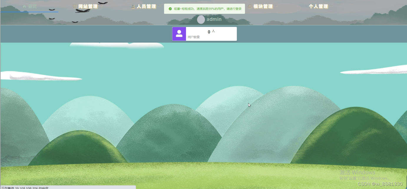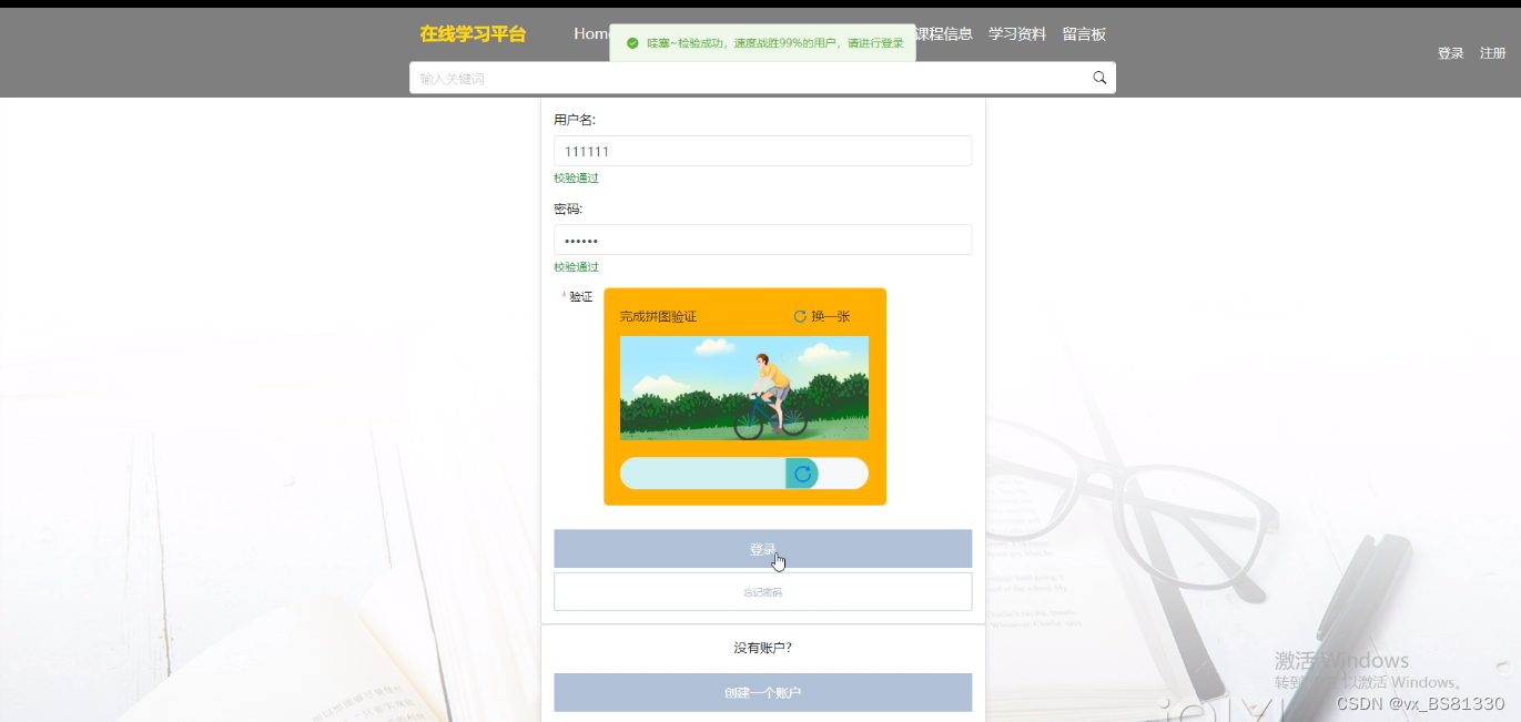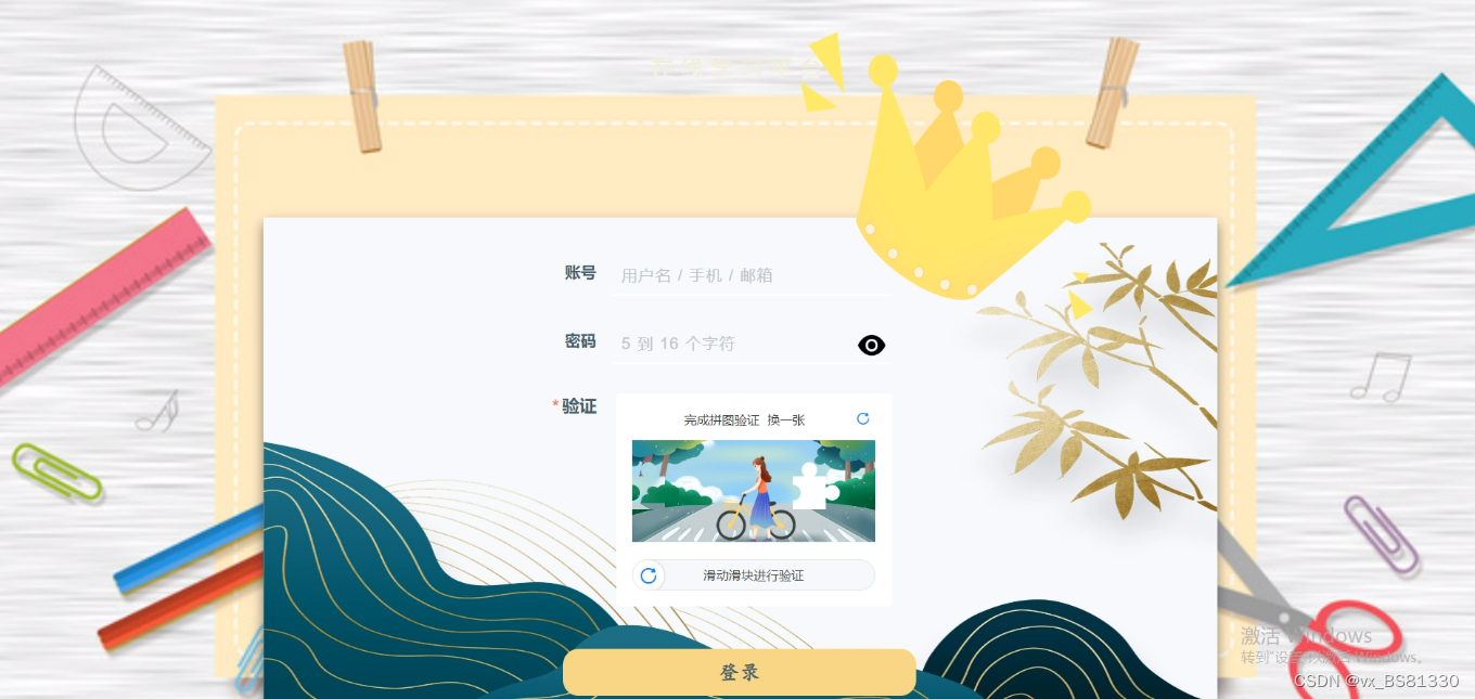 管理员登录,通过填写注册时输入的用户名、密码、滑动滑块进行验证进行点击登录,如图5-5所示。