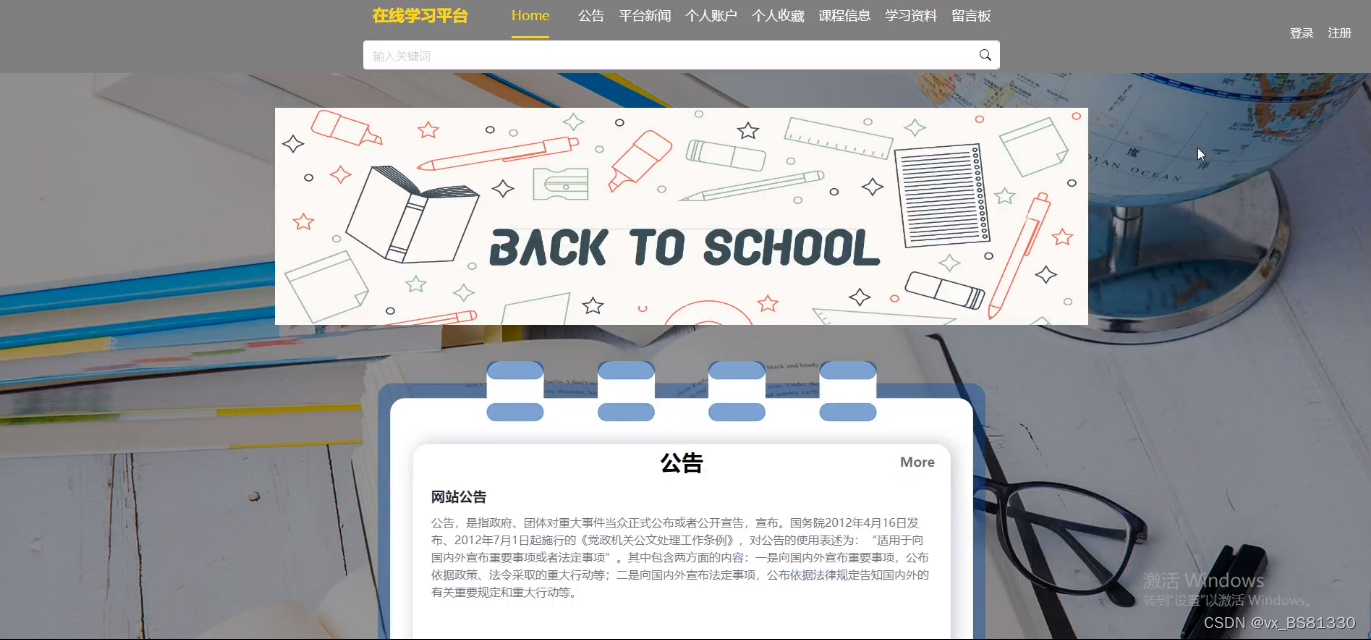 目前许多人仍将传统的纸质工具作为信息管理的主要工具,而网络技术的应用只是起到辅助作用。在对网络工具的认知程度上,较为传统的office软件等仍是人们使用的主要工具,而相对全面且专业的在线学习平台的信息管理软件仍没有得到大多数人的了解或认可。本选题则旨在通过标签分类管理等方式,实现后台首页、网站管理(轮播图、公告)、人员管理(管理员、注册用户)、内容管理(网站帖子、帖子分类、平台新闻、新闻分类)、模块管理(课程分类、课程信息、课程章节、学习资料、留言板)、个人管理(个人信息、修改密码)等信息管理功能,从而达到对在线学习平台信息的高效管理。