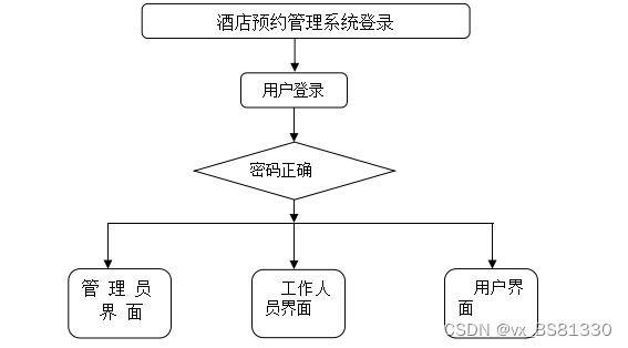 管理员登录,通过填写用户名、密码、权限、验证码等信息,输入完成后选择登录即可进入酒店预约管理系统,如图5-1所示。