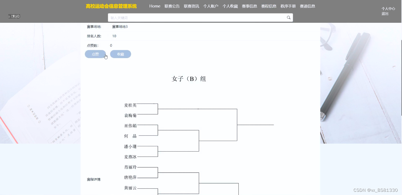 (2)高校运动会信息管理系统中的web后台管理中的前端使用的是JavaScript框架,它配合ajax和jquery可以美化页面设计。