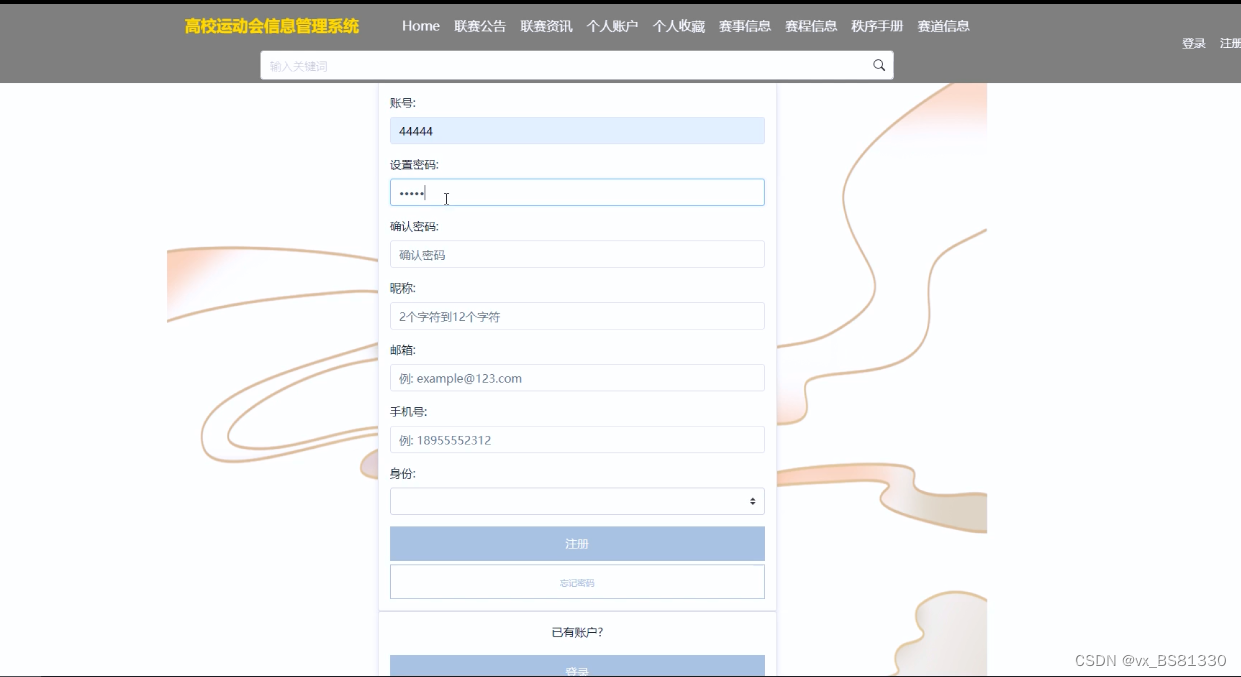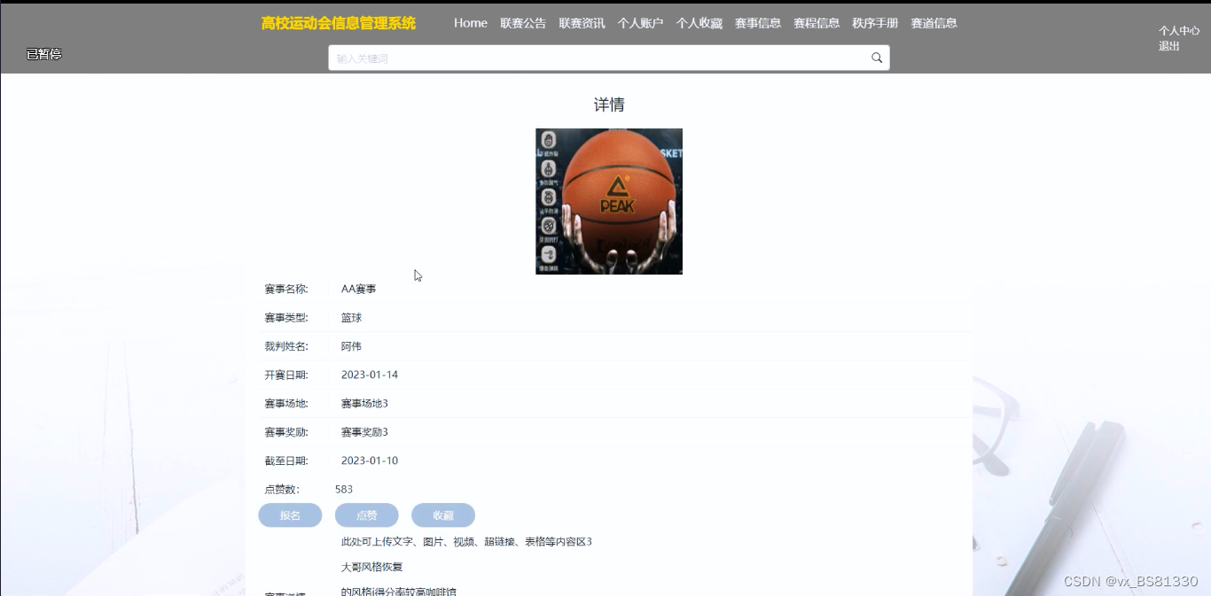 关键词:Java开发语言;springboot框架技术;高校运动会信息管理系统;