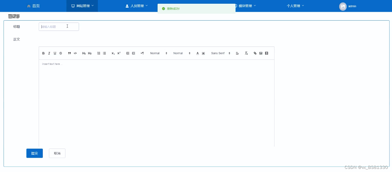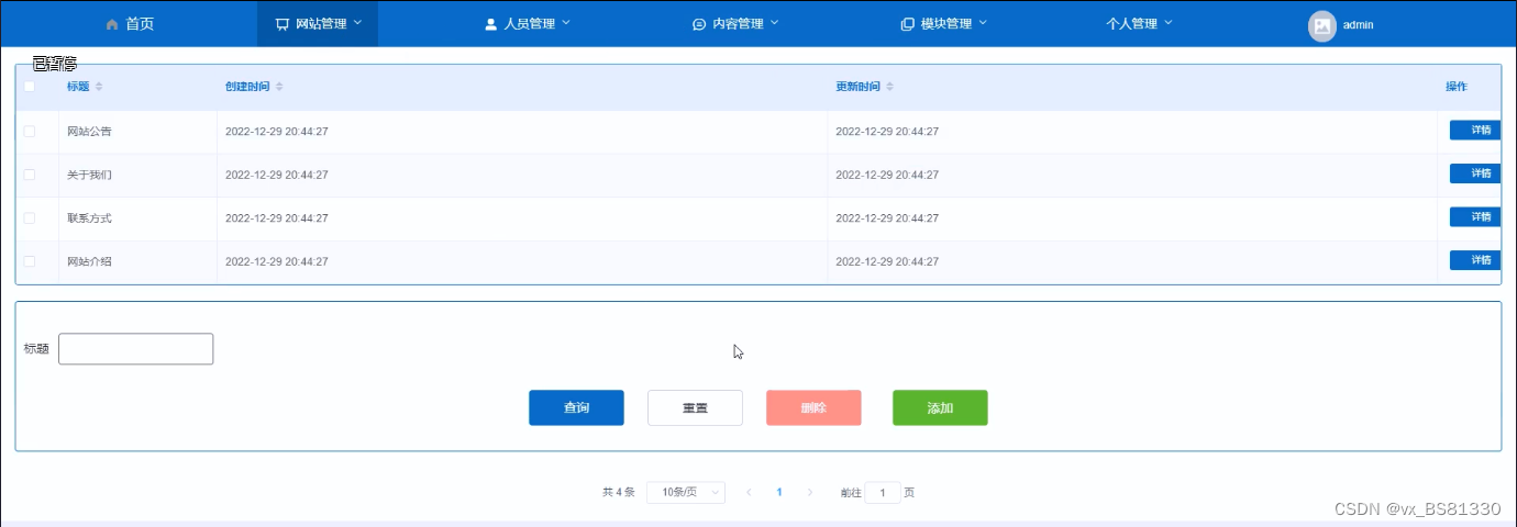 | 前置条件 | 管理员登录成功并跳转到后台主界面 |