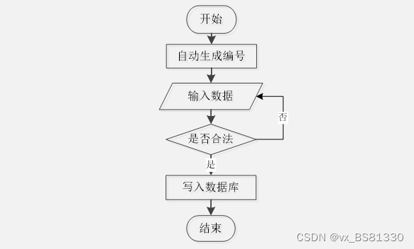 对于家庭健康管理系统,需要随时添加所需要的数据信息,对于用户添加信息,需要根据添加界面,根据选框的内容进行填写所要添加的数据信息,信息输入完成后判断数据信息是否符合要求,符合要求则添加完成,用户所添加的信息不符合要求,则需要返回到第一步,重新输入数据信息,再进行判断操作,如图3-2所示。