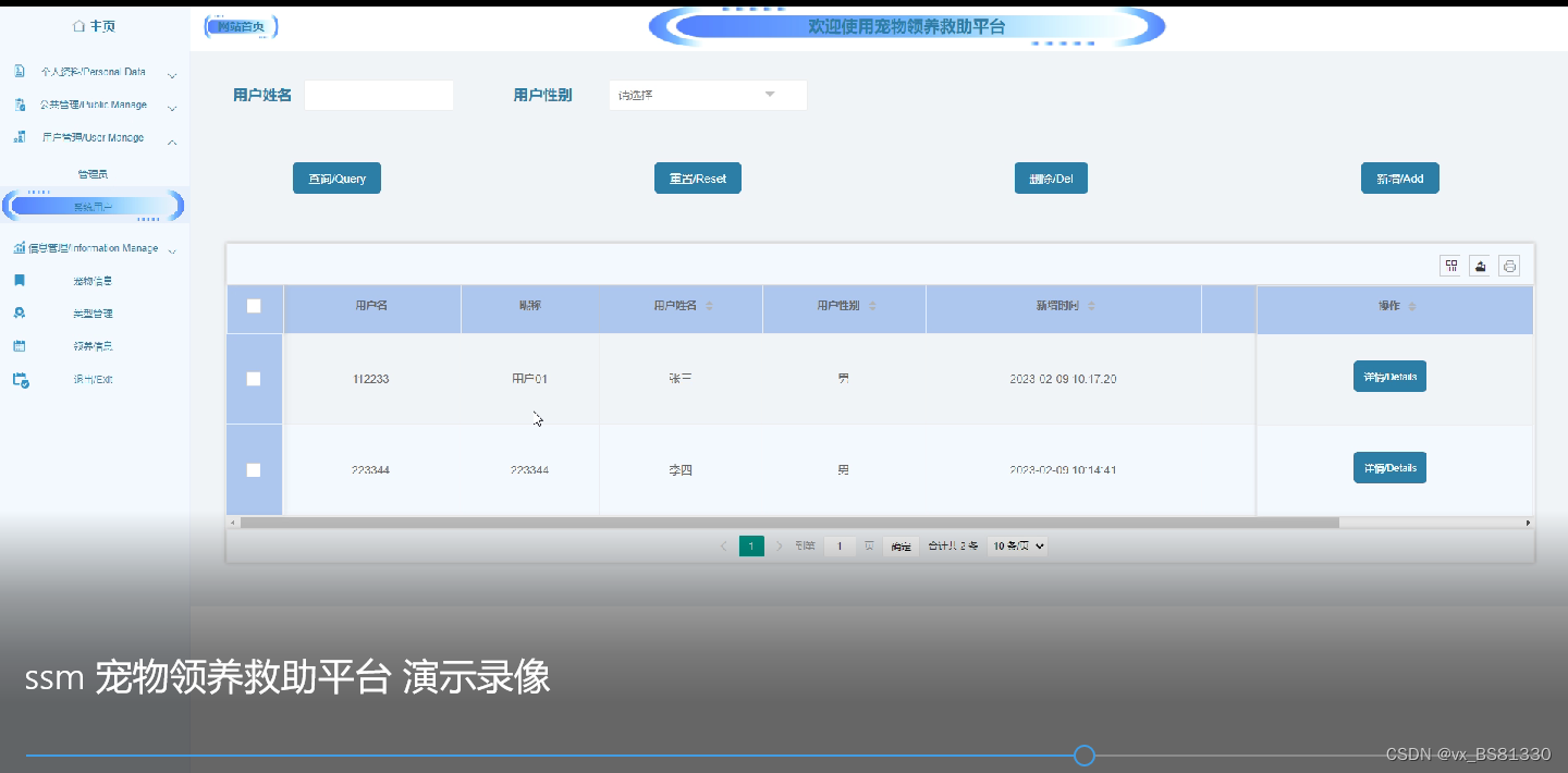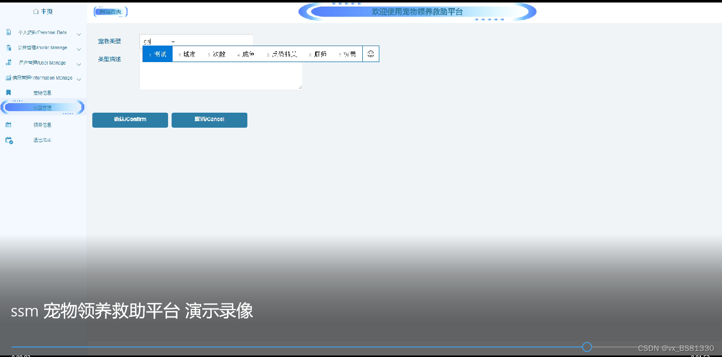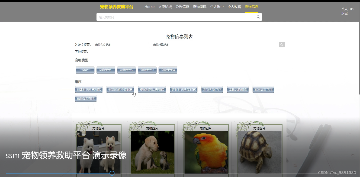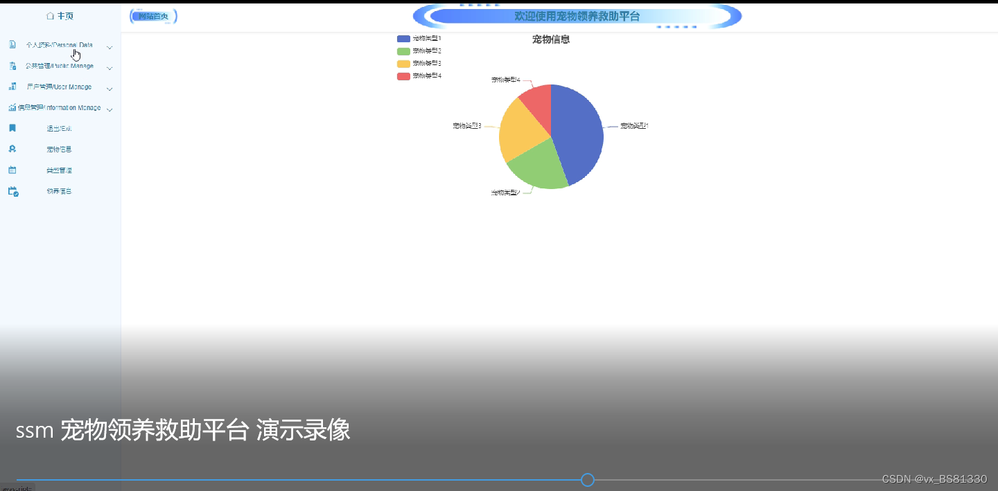 (1)功能要求:可以管理后台首页,个人信息公共管理(轮播图,公告信息),用户管理(管理员,系统用户),信息管理(交流论坛、论坛分类、宠物资讯、宠物信息、类型管理、领养信息)等功能模块。