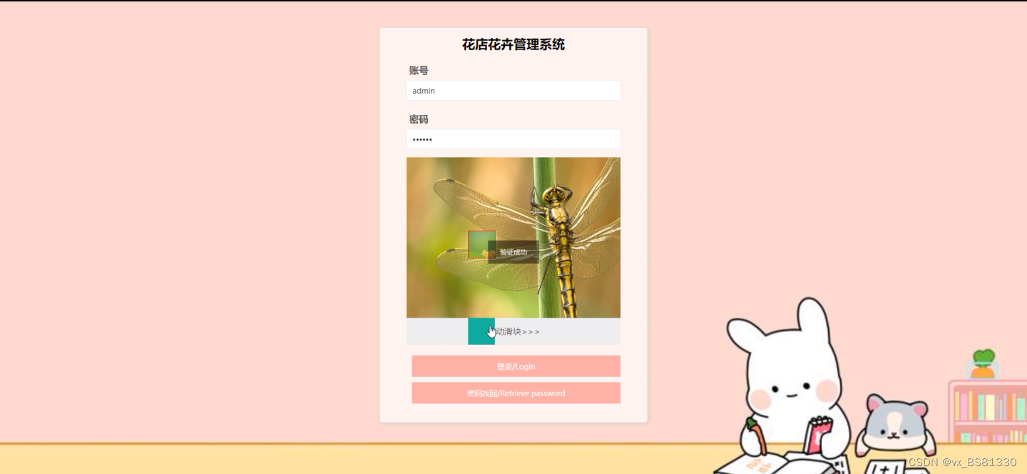 管理员登录,管理员通过输入账号,密码,完成拼图验证即可进行系统登录,如图5-6所示。