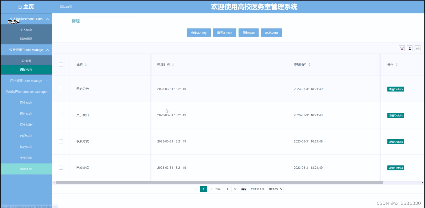 关键词:Java开发语言;springboot框架技术;高校医务室管理系统;
