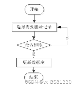 用户选择要删除的信息并单击Delete按钮。系统提示是否删除信息。如果用户想要删除信息,系统将删除信息。系统数据库删除信息。删除信息流程图如图3-5所示。