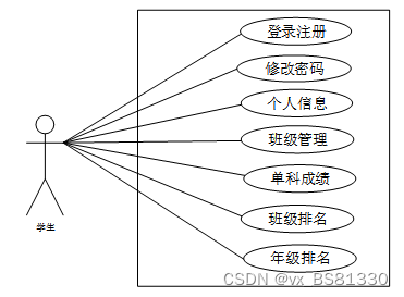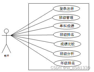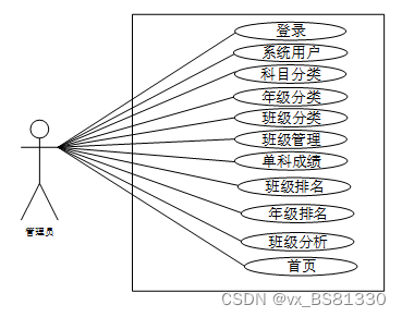 通过2.3功能的分析,得出了本中学成绩管理系统的用例图: