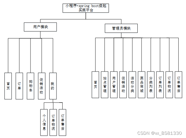 这些功能可以充分满足疫起买菜平台小程序的需求。此系统功能较为全面如下图系统功能结构如图4-5所示。