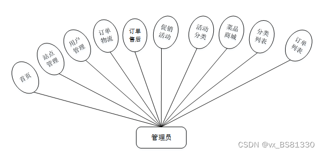 基于疫起买菜平台小程序的设计基于现有的手机,可以实现管理员首页、站点管理(轮播图、公告栏)用户管理(管理员、注册用户)内容管理(促销活动、活动分类)商城管理(菜品商城、分类列表、订单列表)更多管理(订单物流、订单售后)等详细的了解及统计分析。根据系统功能需求建立的模块关系图如下图: