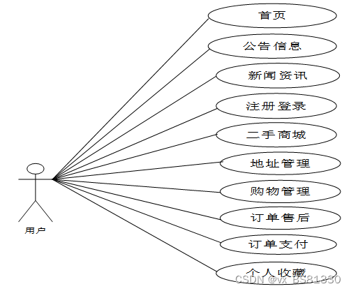 通过2.3功能的分析,得出了本跳蚤市场网络商城的用例图:
