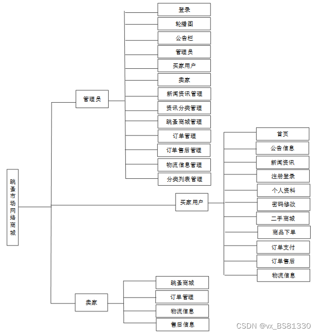 按照跳蚤市场网络商城的角色,我划分为了买家用户管理模块、卖家管理模块和管理员管理模块这三大部分。