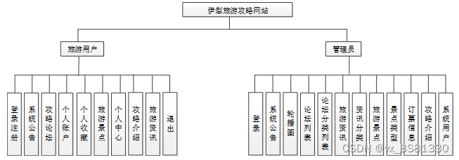 按照伊犁旅游攻略网站的角色,我划分为了旅游用户管理模块和管理员管理模块这两大部分。