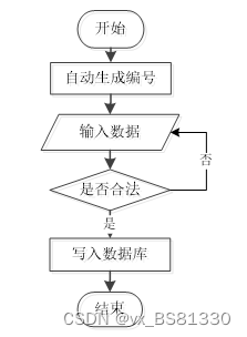 用户成功登入系统后就能够实现增加数据的操作,增加数据的编号是特定的,系统生成,用户不能随意填写,除了编号以外,其他增加信息用户自己填写,填写后的信息经过系统验证,验证合法通过就显示增加数据成功了,相反的话,就没有增加成功,图2-1显示的就是在增加数据时的流程。