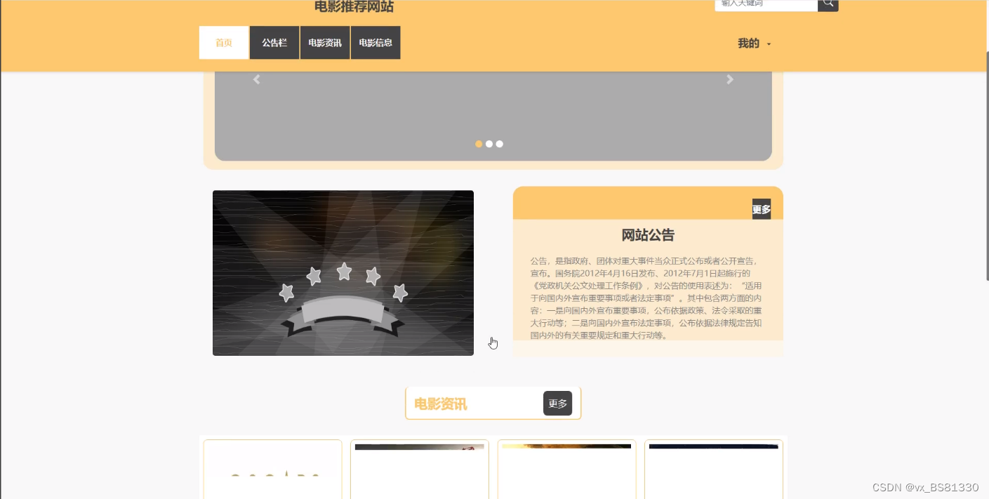 关键词:电影推荐网站;MYSQL数据库;springboot框架;