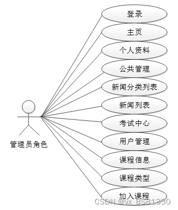 web后台管理上的管理员是维护整个高校学生选课系统中所有数据信息的。管理员角色用例如图2-5所示。