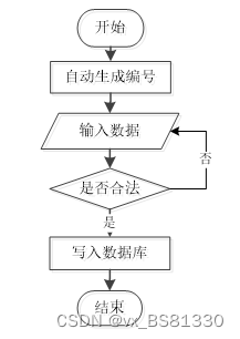用户成功登入系统后就能够实现增加数据的操作,增加数据的编号是特定的,系统生成,用户不能随意填写,除了编号以外,其他增加信息用户自己填写,填写后的信息经过系统验证,验证合法通过就显示增加数据成功了,相反的话,就没有增加成功,图2-1显示的就是在增加数据时的流程。